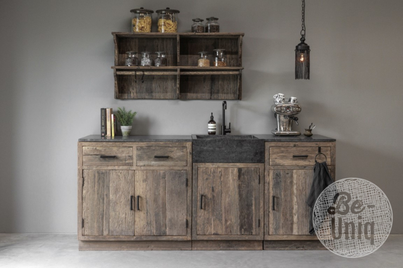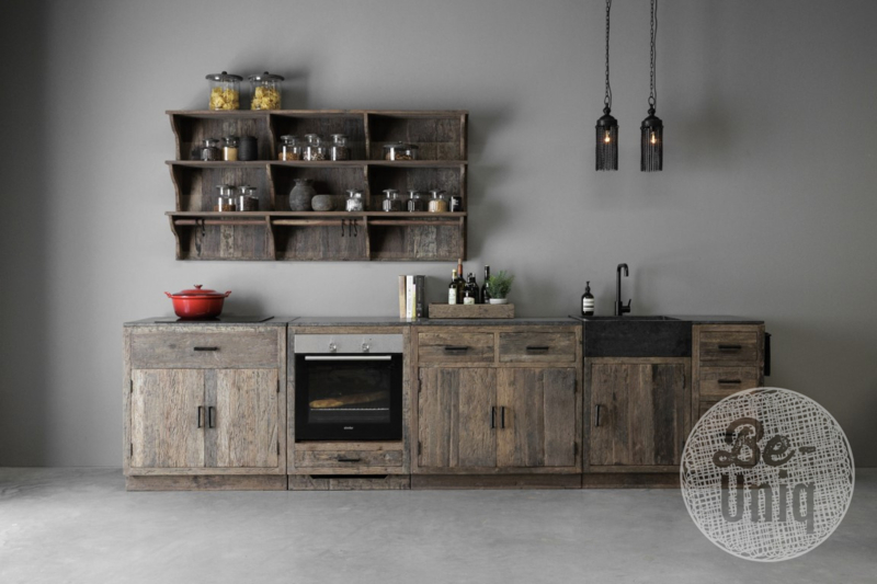 Een bijzondere en functionele eye-catcher: met onze landelijke keukenelementen creëer je zelf je ideale keuken. Het prachtige contrast tussen het rustieke hout en granieten blad zorgen voor een bijzondere uitstraling en met 95 cm hoogte heeft de keuken een ideale werkhoogte.