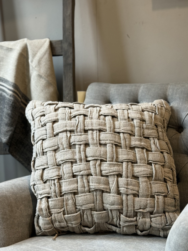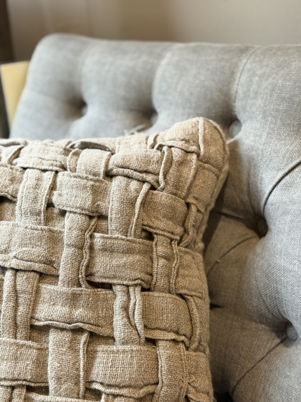Met de hand geweven kussen van linnen, inclusief binnenkussen
