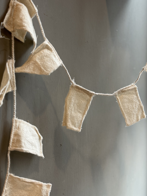 Breng een feestelijke sfeer in huis met deze zes meter lange katoenen slinger van Leeff. Perfect om stijlvol aan de muur te hangen in de woonkamer, kinderkamer of tijdens een zomers tuinfeestje. De slinger wordt geleverd met een katoenen zakje met de quote “Let’s Celebrate”, handig om hem tijdelijk in op te bergen. Gemaakt van restmateriaal, waardoor elk exemplaar uniek is.