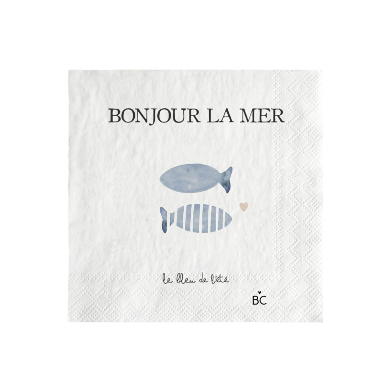 Productomschrijving van: Napkin White/BonjourLaMer Blue 20 pcs 12,5x12,5cm