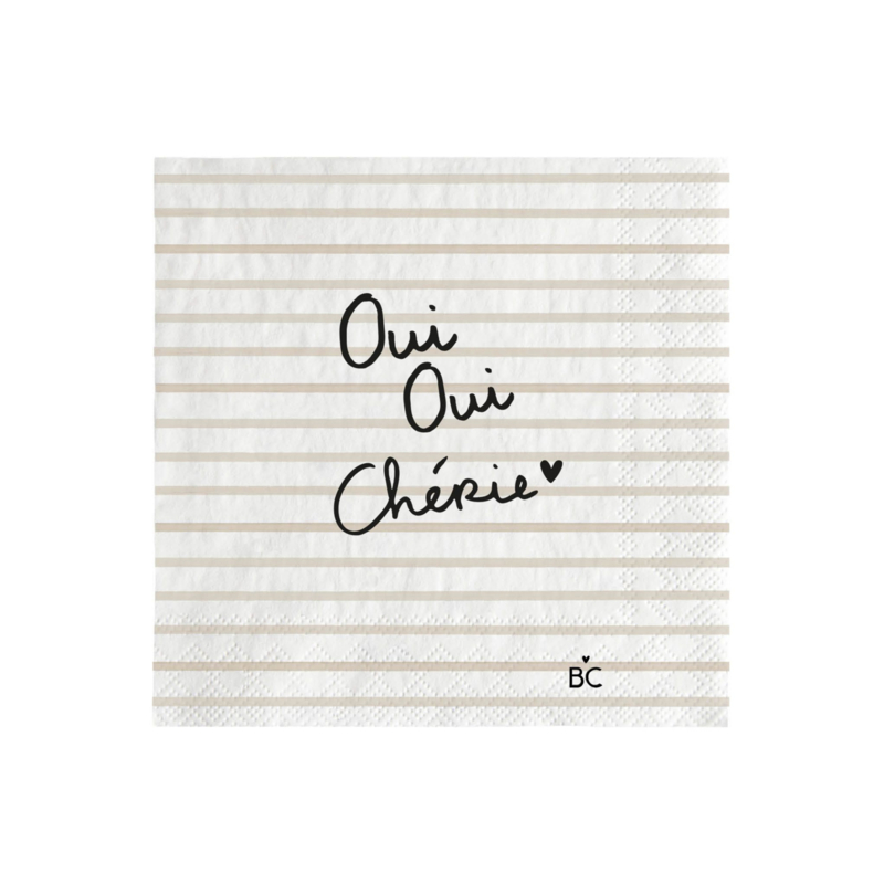 Productomschrijving van: Napkin White/Oui Oui Cherie 20 pcs 12,5x12,5cm