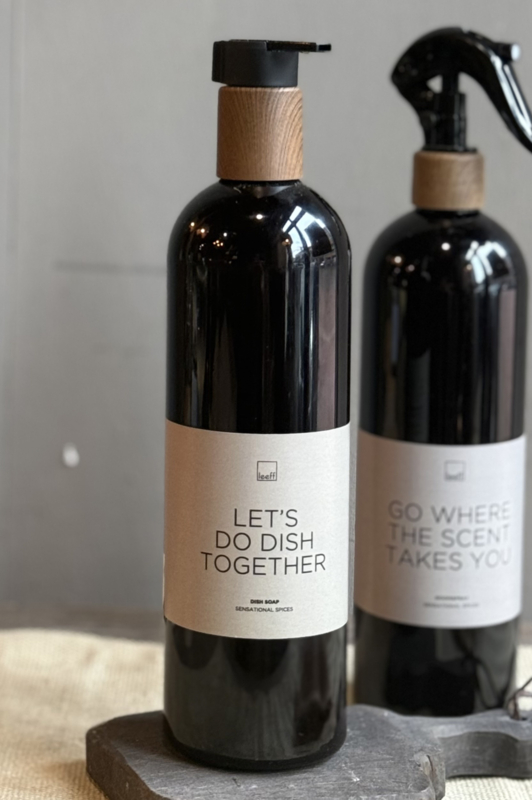 Productomschrijving van: Dish Soap Let’s do dish together -Leeff- Ingrediënten: Water > 30%, Anionogene oppervlakteactieve stoffen 10/15%, Parfum, Sodium Benzoate, Potassium Sorbate, Tetramethylacetyloctahydronaftalenen,…
